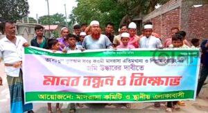 মানববন্ধনকারীরা জানান,তা’লীমুল কুরআন সবর কওমী মাদরাসা এতিমখানা ও লিল্লাহ বোডিং-এর ওয়াকফাকৃত ৬ শতাংশ জমি কুয়েত প্রবাসী রবিউল্লাহর প্রভাবশালি স্ত্রী রোকসানা বেগম তার দুই ছেলে শাওয়ন ও হৃদয় হাসান অবৈধভাবে দখলে নিয়ে স্থাপনা নির্মাণ করছে। নির্মাণ কাজে বাঁধা দিলেও তারা কোনরুপ কর্ণপাত করছেনা। এতে করে ওয়াকফাকৃত জমিটি চলে যাচ্ছে প্রভাবশালিদের দখলে। তাই অনতিবিলম্ভে জমিটি উদ্ধার করে মাদ্রাসা ও এতিমখানায় বুঝিয়ে দেয়ার দাবী তাদের।