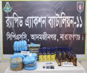 র‌্যাব-১১ নারায়ণগঞ্জ এর অভিযানে ৩০ কেজি গাঁজা ৩৪ বোতল বিদেশী মদ সহ ৩ মাদক ব্যবসায়ী গ্রেফতার