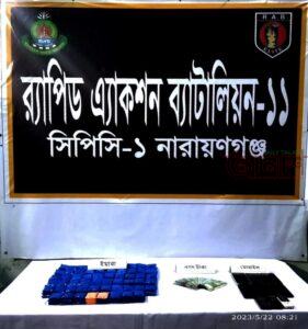 দৈনিক তালাশ ডটকম :১ র্যাব প্রতিষ্ঠালগ্ন থেকে সমাজের বিভিন্ন অপরাধের উৎস উদ্ঘাটন,অপরাধীদের গ্রেফতার অপরাধ দমন ও আইন শৃঙ্খলার সামগ্রিক উন্নয়নে নিরলসভাবে কাজ করে যাচ্ছে। বিভিন্ন অপরাধীদের গ্রেফতার করে আইনের আওতায় আনার জন্য র্যাব ফোর্সেস নিয়মিতভাবে অভিযান পরিচালনা করে থাকে। এছাড়াও সমাজকে মাদকমুক্ত করার জন্য র্যাব নিয়মিত মাকদ বিরোধী অভিযান পরিচালনা করে আসছে। গোয়েন্দা নজরদারী ও আভিযানিক কার্যক্রমের ধারাবাহিকতায় অপরাধীদের দ্রুততম সময়ে গ্রেফতারের মাধ্যমে র্যাব ইতোমধ্যেই জনগণের আস্থা অর্জনে সক্ষম হয়েছে ২।মাদকদ্রব্য নির্মূলে ও মাদকের ভয়াল থাবা থেকে যুব সম্প্রদায়কে রক্ষা করতে র্যাব-১১ বদ্ধপরিকর এবং এ লক্ষ্যে র্যাব-১১ নিরলস ভাবে কাজ করে যাচ্ছে।মাদক নির্মূলের লক্ষ্যে র্যাব-১১ নিয়মিত অভিযান পরিচালনা করে আসছে এবং বিভিন্ন সময়ে র্যাব-১১ বিপুল পরিমান মাদক উদ্ধার সহ মাদক ব্যবসার সাথে জড়িতদেরকে গ্রেফতার পূর্বক আইনের আওতায় নিয়ে আসছে।এরই ধারাবাহিকতায় মাদক বিরোধী অভিযানের অংশ স্বরূপ র্যাব-১১,সিপিসি-১ এর একটি চৌকস আভিযানিক দল ২১মে ২০২৩ ইং তারিখ রাত ২১.০৫ ঘটিকায় গোপন সংবাদের ভিত্তিতে নারায়ণগঞ্জ জেলার বন্দর থানাধীন মদনপুর রাফি ফিলিং স্টেশন এলাকায় অভিযান পরিচালনা করে তৃতীয় লিঙ্গের ০৮ জন মাদক চোরাচালান চক্রের সক্রিয় সদস্যকে গ্রেফতার করতে সক্ষম হয় এবং ৩৫,০০০ পিস ইয়াবা ট্যাবলেট উদ্ধার করে ৩।গ্রেফতারকৃত তৃতীয় লিঙ্গের সদস্যরা হলেন-১।রফিক @ ললিতা (৪০), পিতা-মৃত ফোজাম্মত, মাতা-আজম বাহার, সাং-নাইটাম পাড়া, থানা-টেকনাফ, জেলা- কক্সবাজার ২। রবি আলম @ বিউটি (৪০), পিতা-মৃত আব্দুল হাকিম, মাতা-পাতেলা বেগম, সাং-লিংরোড, মহুরীপাড়া, থানা-কক্সবাজার সদর, জেলা-কক্সবাজার, ৩। একরাম @ পরীমনি (২২), পিতা-মৃত আবুল হোসেন, মাতা-তৈয়বা বেগম, সাং-লেদা লামারপাড়া, থানা-উখিয়া, জেলা-কক্সবাজার, ৪। রবি আলম @ প্রিয়া (২৪), পিতা-মৃত আব্দুল জলিল, মাতা-রমিদা বেগম, সাং- বাজারঘাটা, থানা-কক্সবাজার সদর, জেলা-কক্সবাজার, ৫। মোঃ আল-আমিন @ নিশি (৩৫), পিতা- মৃত আব্দুল আজিজ, মাতা-মৃত সুফিয়া বেগম, সাং-ফতেহপুর, থানা- সোনারগাঁ, জেলা- নারায়ণগঞ্জ এ/পি সাং-মরিচা, হলিদাপালং, থানা-উখিয়া, জেলা-কক্সবাজার, ৬। রায়হান @ আঁখি (২০), পিতা-নুরুল আলম, মাতা-আরজুমান বেগম, সাং-মহেষখালী পাড়া, থানা-টেকনাফ, জেলা- কক্সবাজার, ৭। সাবের @ বিজলী (২২), পিতা-মৃত আব্দুস সালাম, মাতা-নুর বেগম, সাং-লেদা লামারপাড়া, থানা-উখিয়া, জেলা-কক্সবাজার, এ/পি- জালিয়া পাড়া, থানা- টেকনাফ, জেলা- কক্সবাজার এবং ৮। ফারুক @ রিয়ামনি (২৫), পিতা- মৃত জহির আহমেদ, মাতা-মাহাতা খাতুন, সাং-বাজারঘাটা, থানা- কক্সবাজার সদর, জেলা- কক্সবাজার ৪। প্রাথমিক জিজ্ঞাসাবাদে গ