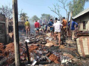 স্থানীয়রা জানান, বুধবার বেলা সাড়ে ১১টার দিকে সাইফুল ইসলামের শয়নঘর থেকে আগুনের সূত্রপাত হয়। মুহুর্তে তা আশপাশের বাড়িঘরে ছড়িয়ে পড়ে। আগুনে ওই গ্রামের সাইদুর রহমান, সাইফুল ইসলাম, মহসীন আলী, আব্দুস সালাম, হোসেন আলী ও রবিউল ইসলামের বাড়ি পুড়ে গেছে। স্থানীয় লোকজন ঘন্টাব্যাপী চেষ্টা চালিয়ে আগুন নিয়ন্ত্রণ করে। আগুনের ঘটনায় ছয় পরিবারের অন্তত ৩০ লক্ষাধিক টাকার ক্ষতিসাধন হয়েছে বলে দাবি করেন ক্ষতিগ্রস্থ পরিবারের লোকজন।
