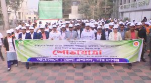 দৈনিক তালাশ ডটকমঃ ২২ জানুয়ারি সকাল ১০ টায় নারায়ণগঞ্জ জেলাপ্রশাসক জনাব মোহাম্মদ জাহিদুল ইসলাম মিঞার তত্ত্বাবধানে জেলা প্রশাসকের কার্যালয় থেকে শোভাযাত্রা বের হয়।
