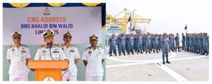 মাননীয় নৌবাহিনী প্রধান এডমিরাল এম নাজমুল হাসান জাহাজের সকল কর্মকর্তা ও নাবিকদের উদ্দেশ্যে সফরের পূর্বে দিকনির্দেশনামূলক বক্তব্য প্রদান করেন।