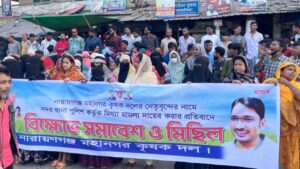 দৈনিক তালাশ ডটকমঃ স্টাফ রিপোর্টার: নারায়নগঞ্জ মহানগর কৃষক দলের নেতৃবৃন্দের নামে নারায়নগঞ্জ সদর থানা পুলিশ কতৃক মিথ্যা মামলা দায়ের করার প্রতিবাদে প্রতিবাদ সমাবেশ ও বিক্ষোভ মিছিল অনুষ্ঠিত হয়েছে।